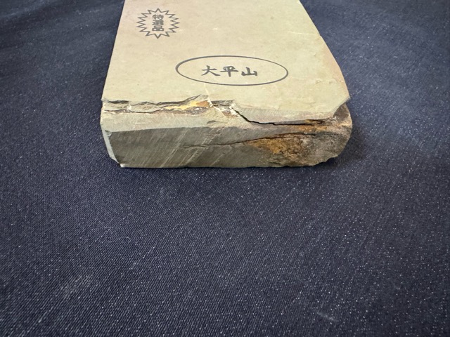 大平は愛宕山付近にあり、最近まで採掘が行われていた数少ない鉱山。鉋、ノミ、包丁、刀剣など幅広くお使い頂けます。今回ご紹介する商品はレザー型です。程よい硬さで使いやすいキメが細かい石です。