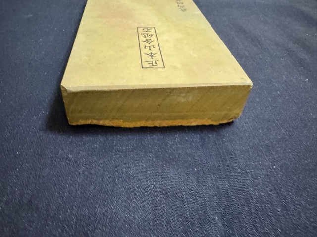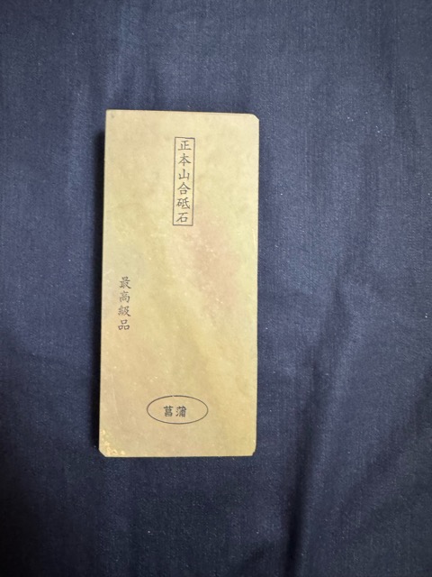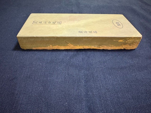 菖蒲は京都天然砥石の中でも最も歴史が古く、鎌倉時代に後鳥羽上皇に献上しその品質が褒められたというエピソードがある鉱山です。すぐ近くに大突、奥殿、中山といった横綱級の砥石が産出されていた梅ヶ畑を代表する鉱山の一つです。品質も中山、奥殿、大突と肩を並べる砥石がとれた山でしたが既に閉山しています。ノミ、カンナ、包丁など幅広くお使い頂けます。今回ご紹介する石は綺麗な色物の大判です。近年は滅多に見ない見事な石で菖蒲らしい研ぎ味の逸品です。