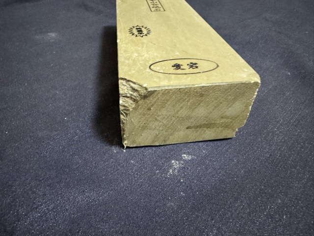 ※愛宕の砥石は天然砥石の中でも特に水に弱い特性があります。養生をしませんとすぐに割れてしまいます。必ずカシュー、漆等で防水の養生をしてからご使用になることをオススメします。尚、ご使用後の割れ等を理由とした返品、交換はお受け出来ませんので予めご了承ください。