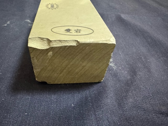 ※愛宕の砥石は天然砥石の中でも特に水に弱い特性があります。養生をしませんとすぐに割れてしまいます。必ずカシュー、漆等で防水の養生をしてからご使用になることをオススメします。尚、ご使用後の割れ等を理由とした返品、交換はお受け出来ませんので予めご了承ください。