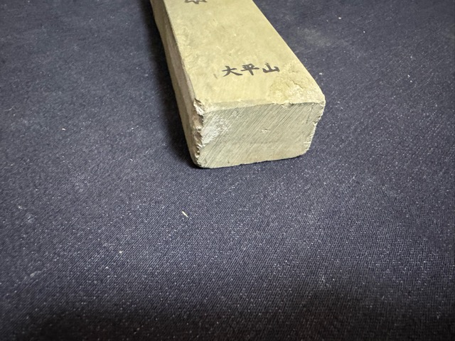 大平は愛宕山付近にあり、最近まで採掘が行われていた数少ない鉱山。鉋、ノミ、包丁、刀剣など幅広くお使い頂けます。サン型の石です。長さがあり扱い易く、価格的にお手頃です。