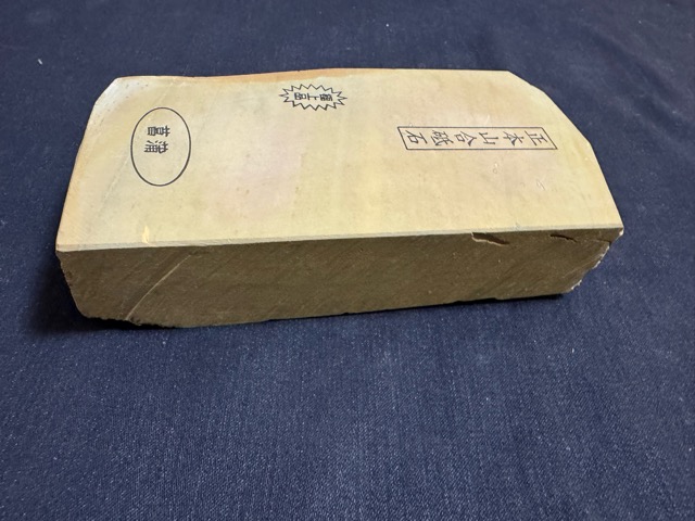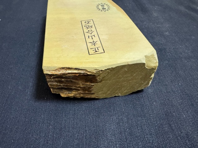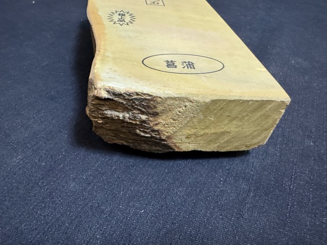 菖蒲は京都天然砥石の中でも最も歴史が古く、すぐ近くに大突、奥殿、中山といった横綱級の砥石が産出されていた梅ヶ畑を代表する鉱山の一つです。品質も中山、奥殿、大突と肩を並べる砥石がとれた山さでしたが既に閉山しています。ノミ、カンナ、包丁など幅広くお使い頂けます。今回ご紹介する菖蒲は程良い硬さの厚物で菖蒲らしい研ぎ味の逸品です。東物ならではの細かい研ぎにお使い頂けます。ボリューム感がある希少品ですのでお見逃しなく。