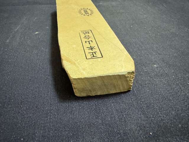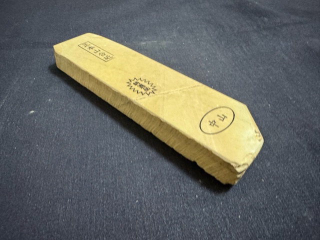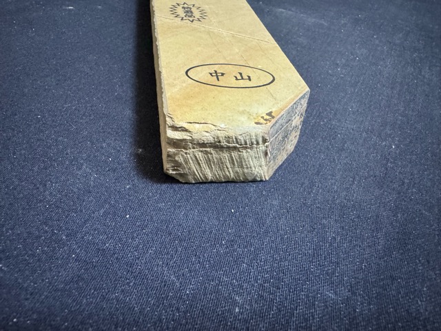 天然砥石の最高峰と言われる京都仕上げ砥石の中でも別格の品質で、鎌倉時代から採掘され、歴代の天皇、幕府の御用砥石とされてきたのが、梅ヶ畑の中心部の中山(加藤鉱山)で採掘された中山の砥石(通称マルカ)です。天然砥石の中でもダントツの人気です。今回、長さのあるサン型の中山砥石をご紹介します。細かな研ぎに中山が欲しいと言うお客様に最適です。違いは明らかですので、是非この機会にお買い求めください。