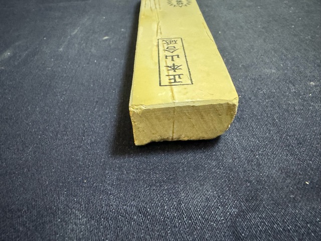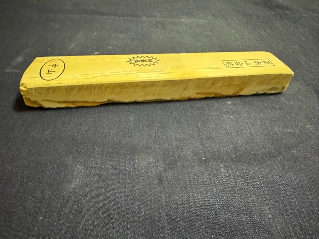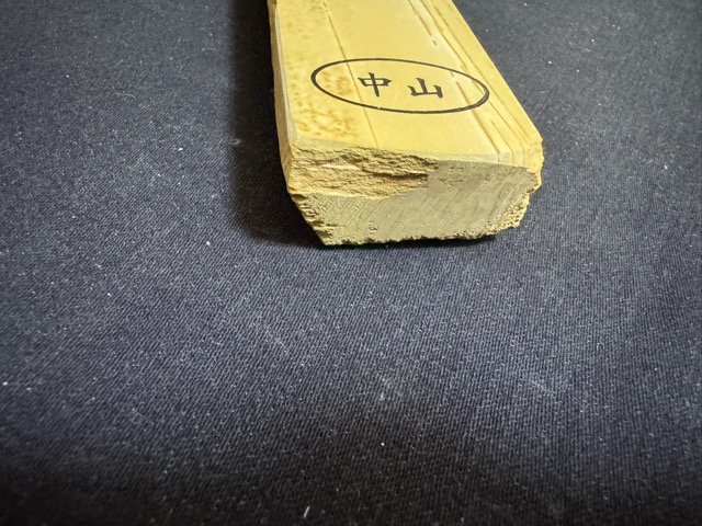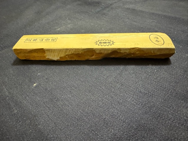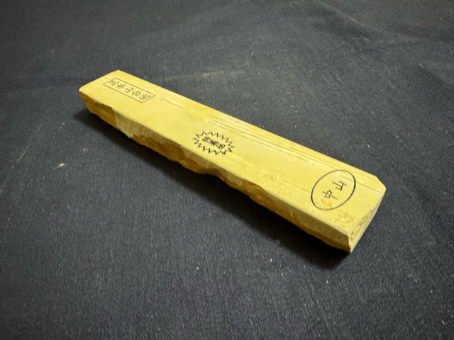 天然砥石の最高峰と言われる京都仕上げ砥石の中でも別格の品質で、鎌倉時代から採掘され、歴代の天皇、幕府の御用砥石とされてきたのが、梅ヶ畑の中心部の中山(加藤鉱山)で採掘された中山の砥石(通称マルカ)です。天然砥石の中でもダントツの人気です。今回、長さのあるサン型の中山砥石をご紹介します。細かな研ぎに中山が欲しいと言うお客様に最適です。違いは明らかですので、是非この機会にお買い求めください。