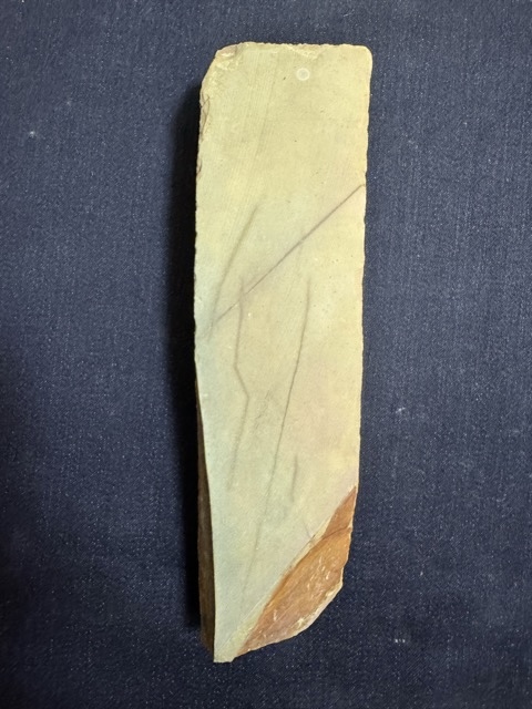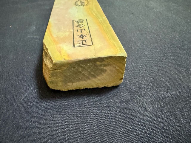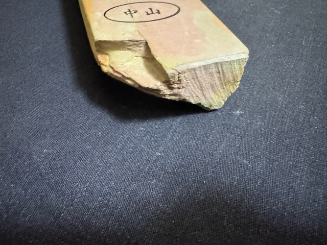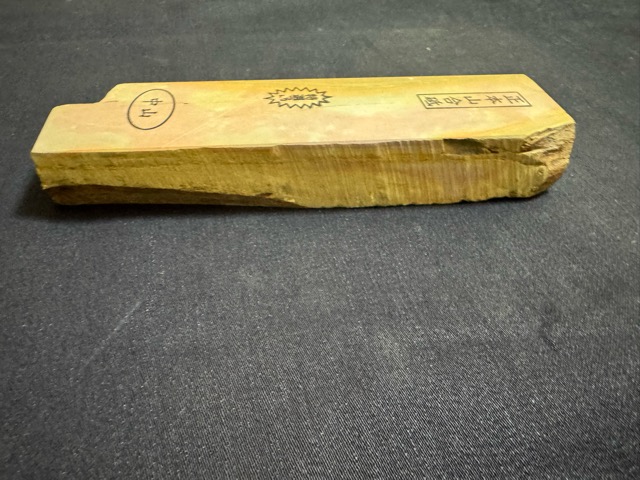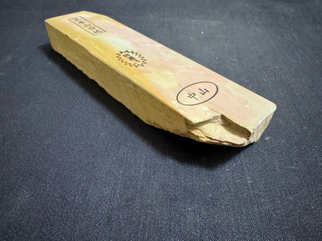 天然砥石の最高峰と言われる京都仕上げ砥石の中でも別格の品質で、鎌倉時代から採掘され、歴代の天皇、幕府の御用砥石とされてきたのが、梅ヶ畑の中心部の中山(加藤鉱山)で採掘された中山の砥石(通称マルカ)です。天然砥石の中でもダントツの人気です。今回、長さのあるサン型の中山砥石をご紹介します。細かな研ぎに中山が欲しいと言うお客様に最適です。違いは明らかですので、是非この機会にお買い求めください。
