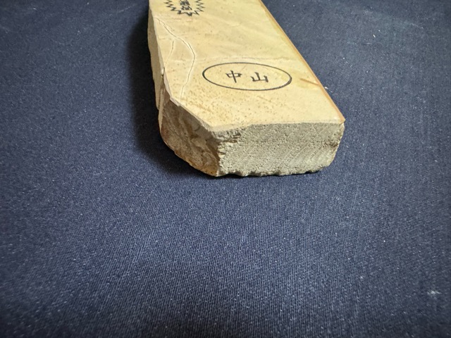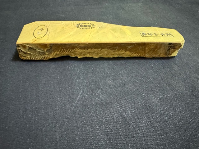 天然砥石の最高峰と言われる京都仕上げ砥石の中でも別格の品質で、鎌倉時代から採掘され、歴代の天皇、幕府の御用砥石とされてきたのが、梅ヶ畑の中心部の中山(加藤鉱山)で採掘された中山の砥石(通称マルカ)です。天然砥石の中でもダントツの人気です。今回、長さのあるサン型の中山砥石をご紹介します。細かな研ぎに中山が欲しいと言うお客様に最適です。違いは明らかですので、是非この機会にお買い求めください。