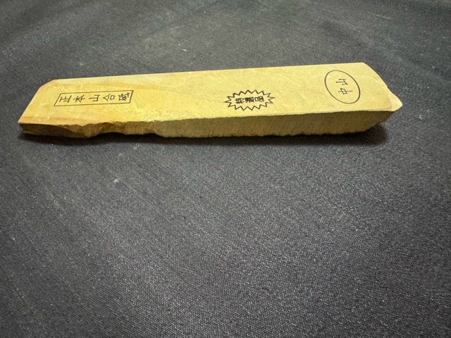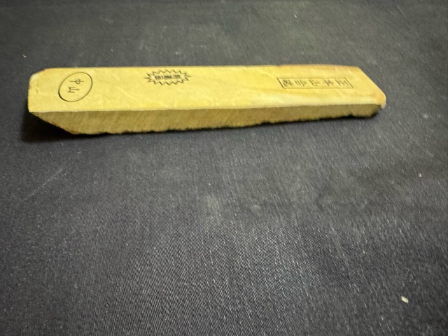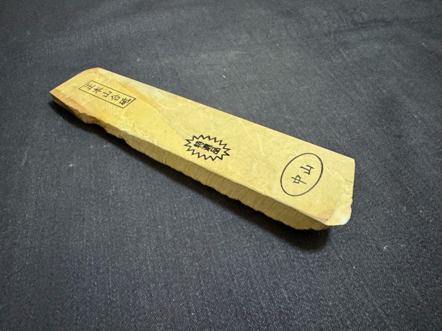 天然砥石の最高峰と言われる京都仕上げ砥石の中でも別格の品質で、鎌倉時代から採掘され、歴代の天皇、幕府の御用砥石とされてきたのが、梅ヶ畑の中心部の中山(加藤鉱山)で採掘された中山の砥石(通称マルカ)です。天然砥石の中でもダントツの人気です。今回、長さのあるサン型の中山砥石をご紹介します。細かな研ぎに中山が欲しいと言うお客様に最適です。違いは明らかですので、是非この機会にお買い求めください。