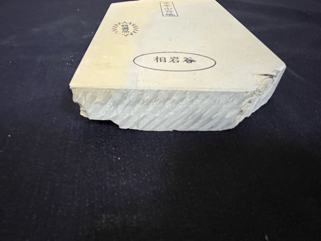 相岩谷は京都近郊の滋賀県にある礦山で中山によく似た砥石が取れます。ノミ、カンナ、包丁など幅広くお使い頂けます。今回ご紹介する石は黒っぽい地味な色の相岩谷ですが、幅があり使いやすい大きさの石です。