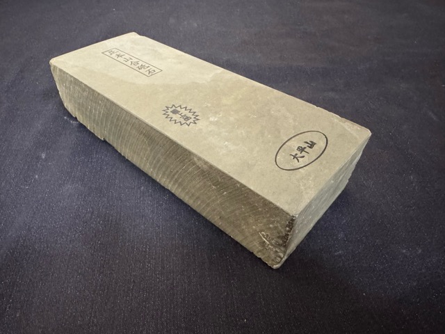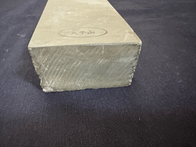 大平は愛宕山付近にあり、最近まで採掘が行われていた数少ない鉱山。鉋、ノミ、包丁、刀剣など幅広くお使い頂けます。今回ご紹介する商品は24型で尺長のボリューム感ある砥石です。硬口ですが、研ぎやすい砥石です。地味な砥石ですが、非常にキメが細かく霞がかった仕上がりに研げる石です。この大きさの大平としてはお買得ではオススメです。