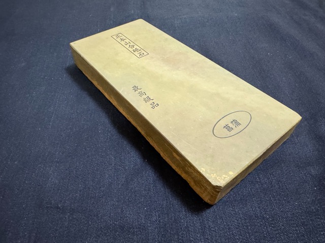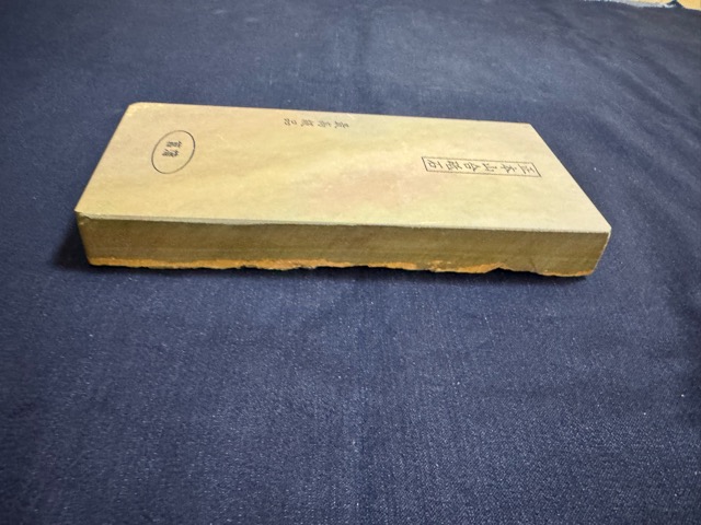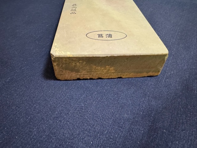 菖蒲は京都天然砥石の中でも最も歴史が古く、鎌倉時代に後鳥羽上皇に献上しその品質が褒められたというエピソードがある鉱山です。すぐ近くに大突、奥殿、中山といった横綱級の砥石が産出されていた梅ヶ畑を代表する鉱山の一つです。品質も中山、奥殿、大突と肩を並べる砥石がとれた山でしたが既に閉山しています。ノミ、カンナ、包丁など幅広くお使い頂けます。今回ご紹介する石は綺麗な色物の大判です。近年は滅多に見ない見事な石で菖蒲らしい研ぎ味の逸品です。