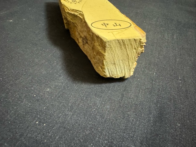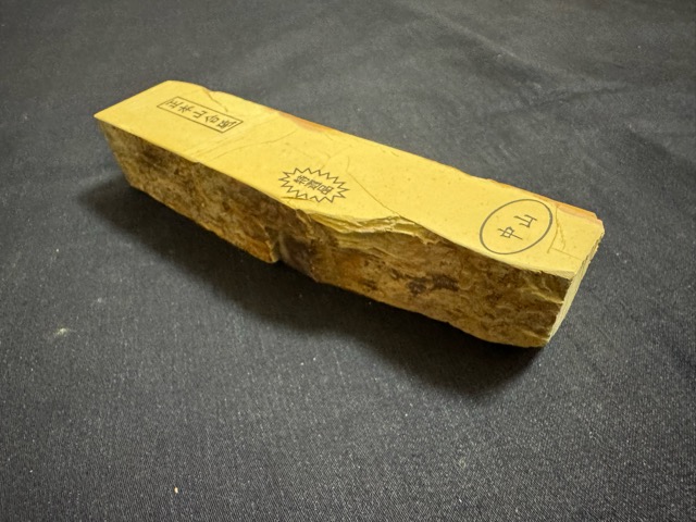 天然砥石の最高峰と言われる京都仕上げ砥石の中でも別格の品質で、鎌倉時代から採掘され、歴代の天皇、幕府の御用砥石とされてきたのが、梅ヶ畑の中心部の中山(加藤鉱山)で採掘された中山の砥石(通称マルカ)です。天然砥石の中でもダントツの人気です。今回、長さのあるサン型の中山砥石をご紹介します。細かな研ぎに中山が欲しいと言うお客様に最適です。違いは明らかですので、是非この機会にお買い求めください。