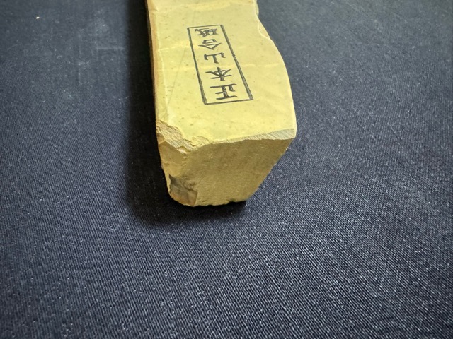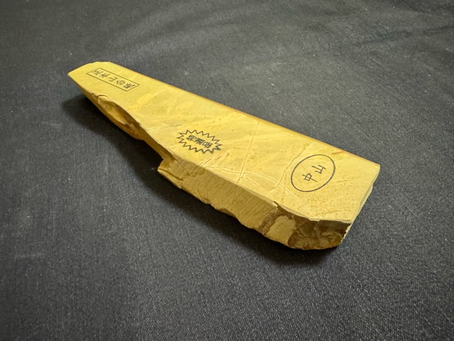 ※今回紹介するサン型の中山は40年以上前に採掘された原石から加工した昔の石です。マルカの印はありませんが、品質は変わりません。鮮やかな黄板ですが、筋があり難ありです。地艶でお使い頂くか筋を削ってお使いください。