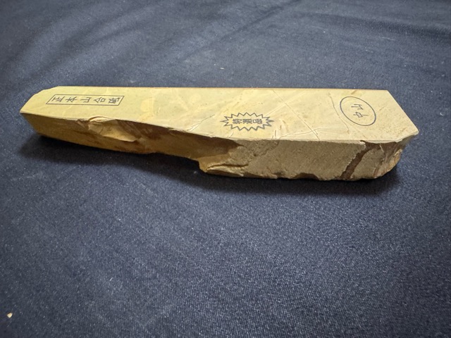 天然砥石の最高峰と言われる京都仕上げ砥石の中でも別格の品質で、鎌倉時代から採掘され、歴代の天皇、幕府の御用砥石とされてきたのが、梅ヶ畑の中心部の中山(加藤鉱山)で採掘された中山の砥石(通称マルカ)です。天然砥石の中でもダントツの人気です。今回、長さのあるサン型の中山砥石をご紹介します。細かな研ぎに中山が欲しいと言うお客様に最適です。違いは明らかですので、是非この機会にお買い求めください。
