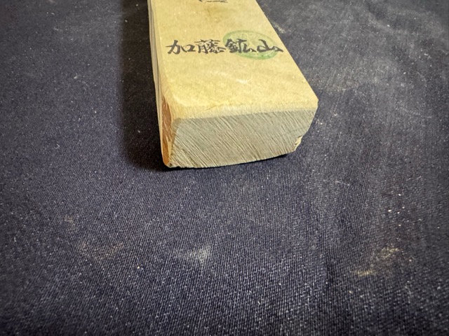 天然砥石の最高峰と言われる京都仕上げ砥石の中でも別格の品質で、鎌倉時代から採掘され、歴代の天皇、幕府の御用砥石とされてきたのが、梅ヶ畑の中心部の中山(加藤鉱山)で採掘された中山の砥石(通称マルカ)です。加藤鉱山は、およそ800年の間採掘された結果、掘り尽され、30年以上前に閉山となっていました。周辺は宅地化が進み住宅街が近くまで迫っている為、かつてのような大規模採掘はできませんが、最近、京都の採掘業者が採掘を試みています。