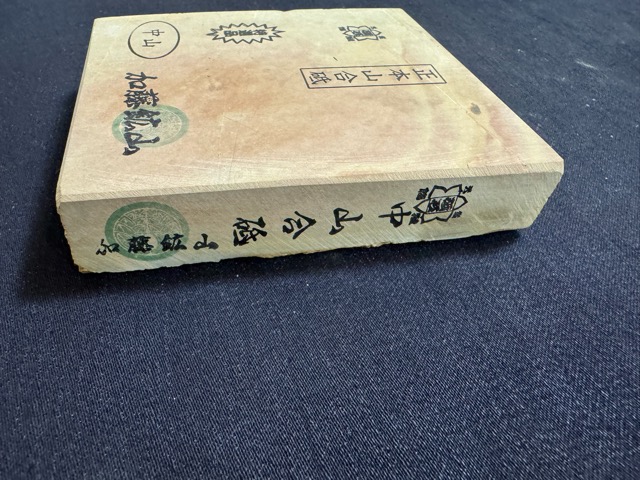 天然砥石の最高峰と言われる京都仕上げ砥石の中でも別格の品質で、鎌倉時代から採掘され、歴代の天皇、幕府の御用砥石とされてきたのが、梅ヶ畑の中心部の中山(加藤鉱山)で採掘された中山の砥石(通称マルカ)です。加藤鉱山は、およそ800年の間採掘された結果、掘り尽され、30年以上前に閉山となっていました。周辺は宅地化が進み住宅街が近くまで迫っている為、かつてのような大規模採掘はできませんが、最近、京都の採掘業者が採掘を試みています。